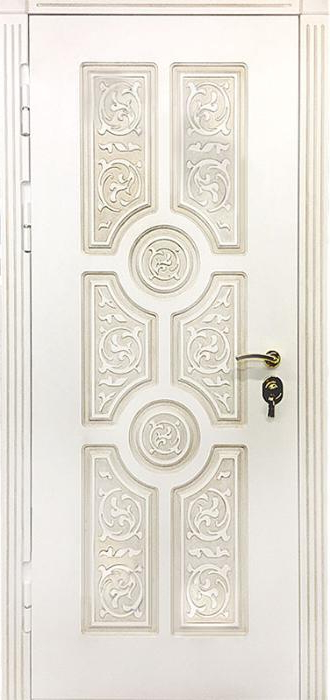Дверь уличная с терморазрывом №49 — это надежное решение для частных домов и коттеджей, которое обеспечит комфорт и защиту от внешних факторов. С терморазрывом в коробке и полотне, эта дверь исключает проникновение холода, сохраняя тепло в доме и предотвращая появление конденсата. Внешняя и внутренняя отделка выполнена с использованием накладки МДФ, что придает двери привлекательный вид и долговечность, стойкость к механическим повреждениям и атмосферным воздействиям. Ковка, как элемент декора, добавляет изысканности и подчеркивает индивидуальность. Металлическая конструкция с толщиной полотна 1,5 мм и каркасом из профильных труб гарантирует прочность и устойчивость. Уплотнение с тремя контурами магнитного герметика и высокая шумо- и теплоизоляция на основе пенопласта делают дверь идеальной для использования в уличных условиях. Возможность замены замков и добавления стеклопакетов или кованых элементов позволяет индивидуализировать дверное решение под любые потребности. Дверь уличная с терморазрывом №49 от производителя: быстрое изготовление и монтаж в Краснозаводске, индивидуальные размеры, широкий выбор материалов и фурнитуры, официальная гарантия до 10 лет.