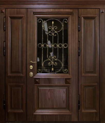 Входная металлическая дверь с порошковым покрытием, стеклом и ковкой в частный дом №27 — это не только надежность, но и стильное решение для вашего коттеджа или частного дома. Массив дерева, использованный в отделке снаружи и внутри, придаёт двери тепло и элегантность, в то время как прочная металлическая конструкция с профильной трубой и листом металла толщиной 2 мм обеспечивает долговечность и защиту. Стекло и кованые элементы добавляют изысканности, а порошковое покрытие защищает от внешних воздействий, сохраняя первоначальный вид. Терморазрыв в коробке и полотне помогает минимизировать теплопотери, а эффективная система уплотнения с двумя контурами гарантирует уют и тишину в вашем доме. Входная металлическая дверь с порошковым покрытием стеклом и ковкой в частный дом №27 от производителя: быстрое изготовление и монтаж в Краснозаводске, индивидуальные размеры, широкий выбор материалов и фурнитуры, официальная гарантия до 10 лет.
